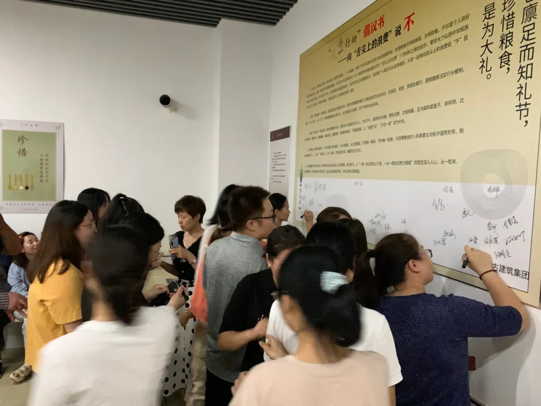 活动发布山西古建《“光盘行动”倡议书》,山西古建全体员工纷纷在倡议书前签下自己的名字,并以“光盘”践行“珍惜粮食,远离浪费”的节约承诺。