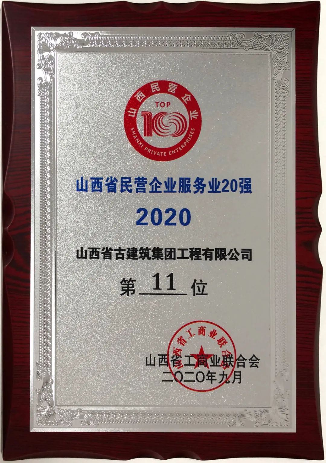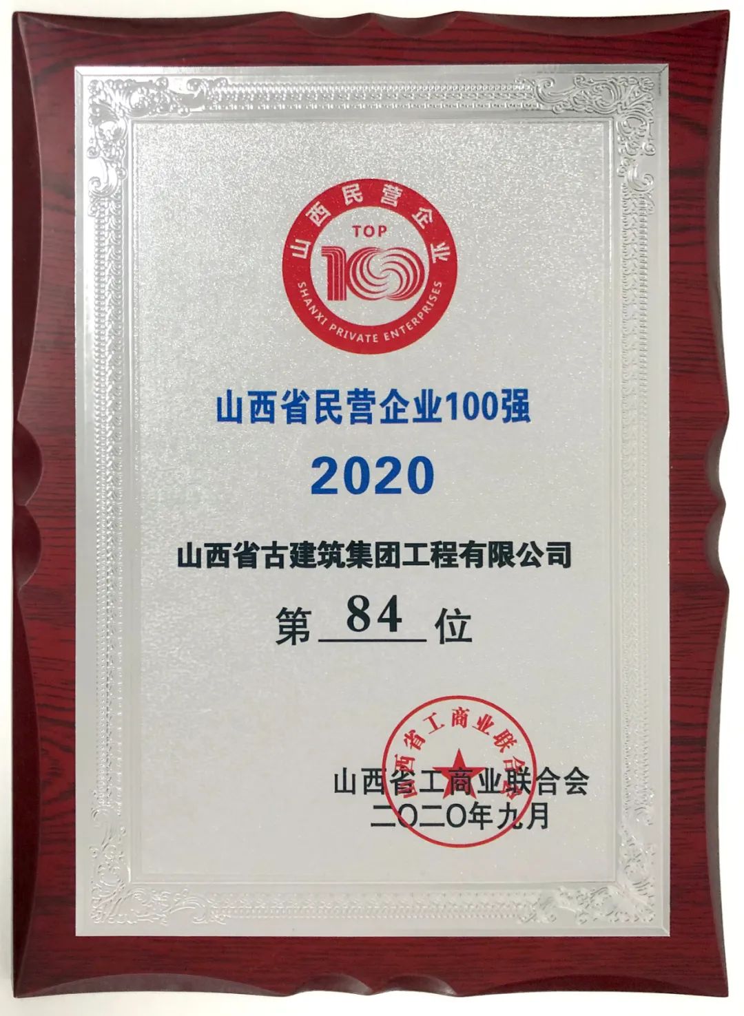百强民企作为山西民营企业的“领头雁”,是标杆,更是所有民营企业的追赶目标。入围百强民企榜单,这是一份荣耀,更是一份责任。山西省古建筑集团荣获“2020山西民营企业100强”称号,位列第84位;这项荣誉是对山西古建的肯定与鼓励,也标志着山西古建通过不断努力,在企业规模、社会效益、综合实力方面不断迈上新台阶。