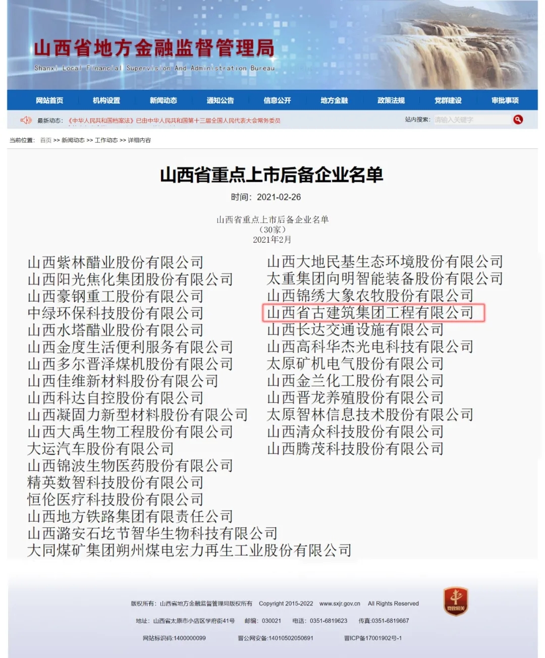 山西省古建筑集团入选山西省重点上市后备企业名单(30家)