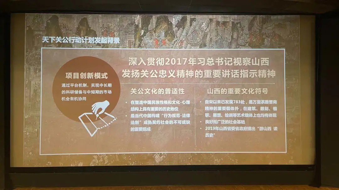 该项公益基金旨在探索新时期文化和旅游融合发展的创新模式与路径方法,探索新时期主客共享、央地共建、政府与社会力量共助、公益与商业双驱共赢的创新与治理模式,打造从文物和旅游资源大省到强产业、强市场、强认知的文化和旅游强省的山西样本,以“中国的山西,世界的中国”为推进路径,将成功经验与实践案例在国内国际复制推广,为促进文化交流、文明互鉴、文化和旅游的融合发展贡献“中国方案”。