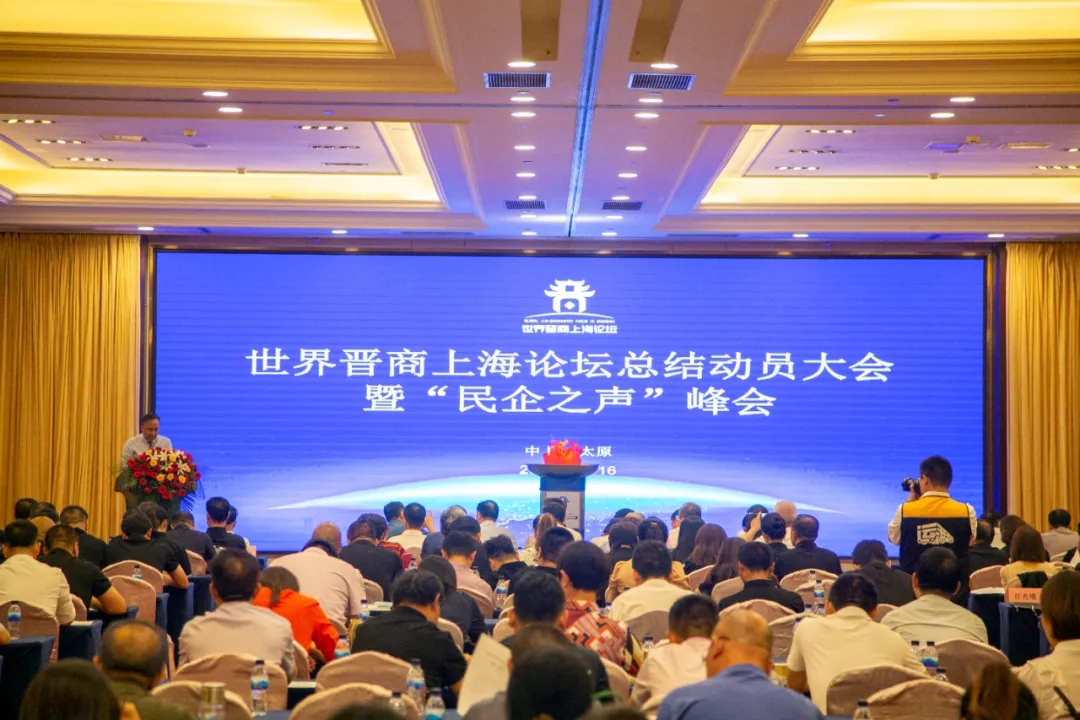 山西省民营经济促进会二届一次理事会后,召开世界晋商上海论坛总结动员大会暨“民企之声”峰会,王国华董事长作为山西省民营经济促进会会长发表致辞。