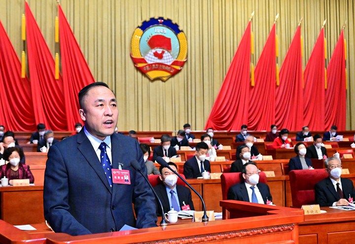 1月13日,山西省政协委员、山西省古建筑集团董事长王国华参加省政协十三届一次会议工商联组别联组讨论。