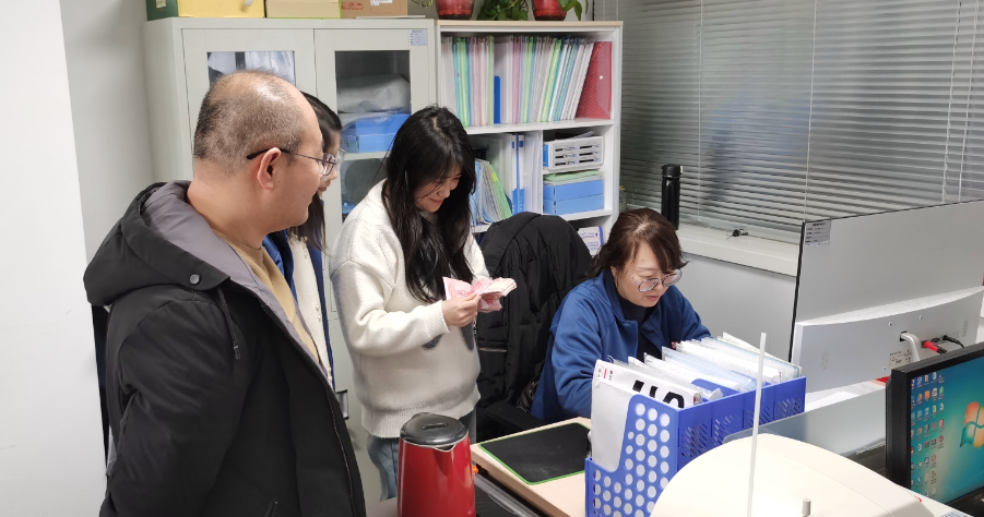 天气虽然寒冷,新春福利发放现场却是一派热火朝天的景象。公司财务部工作人员将一份份承载着关怀关爱的年礼传递给每位员工。大家手里拿着这份福利金,心里升腾着甜滋滋的暖意。