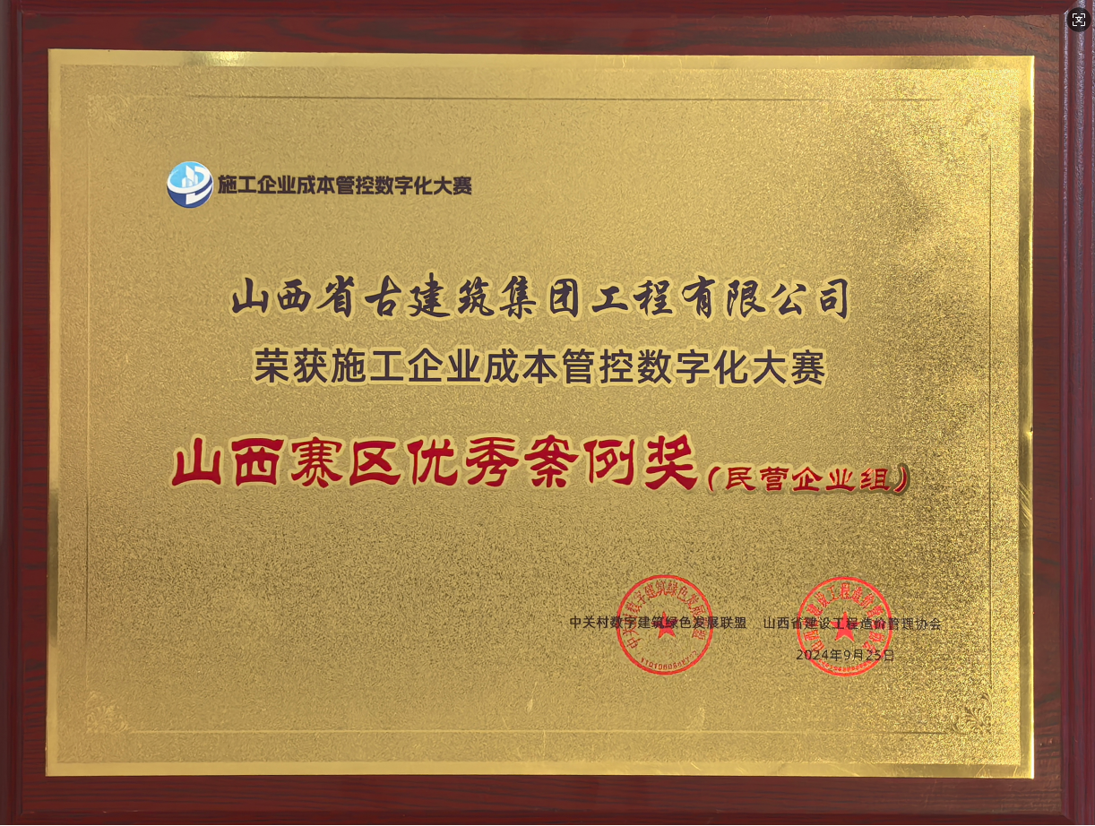 山西古建荣获施工企业成本管控数字化大赛山西赛区优秀案例奖
