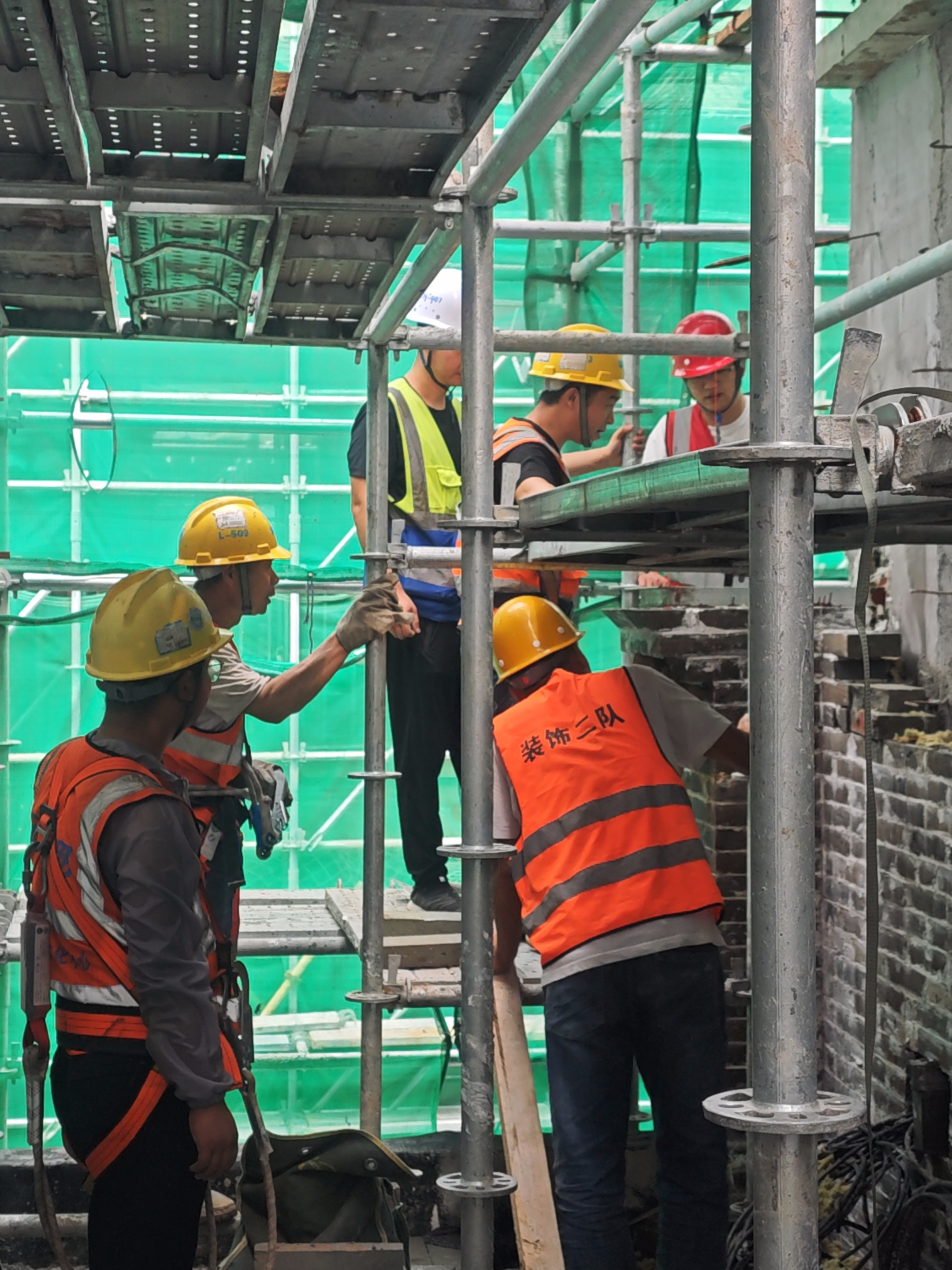 无论是基础工程,还是建筑结构,亦或是室内外的精细化装饰,项目现场的工人们始终坚守岗位,用汗水和毅力把每一项施工任务完成到极致。面对天气的严峻考验,他们顶风冒雪、战酷暑严寒,每天都是与时间赛跑,与困难斗争。严寒的冬季,工人们戴着厚厚的手套、穿着保暖衣物,依然坚守在施工现场,迎接清晨第一缕阳光;酷热的夏季,汗水浸湿了工人的衣襟,却没有人退缩。每一滴汗水,都是对项目质量的坚守,每一份辛劳,都是这座文化地标能够顺利完工的基石。